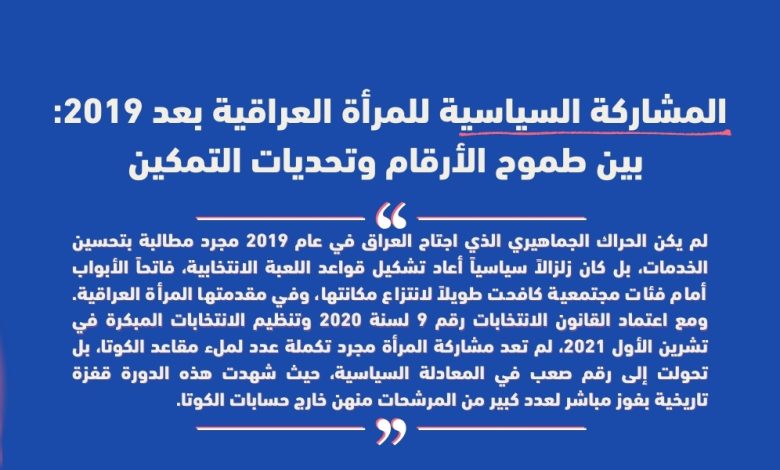 المشاركة السياسية للمرأة العراقية بعد 2019: بين طموح الأرقام وتحديات التمكين