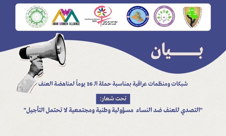 بيان شبكات ومنظمات عراقية بمناسبة حملة الـ 16 يومًا لمناهضة العنف
